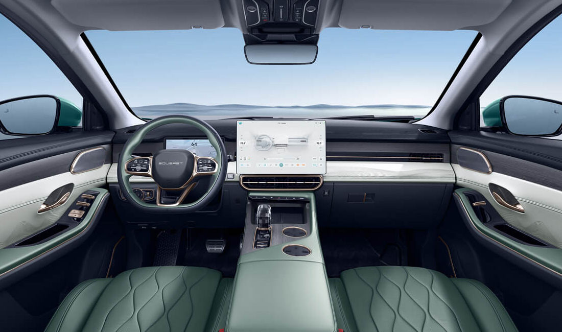 - Декоративная отделка: Фактурные вставки из кластика и кожи, бронзовые акценты в интерьере